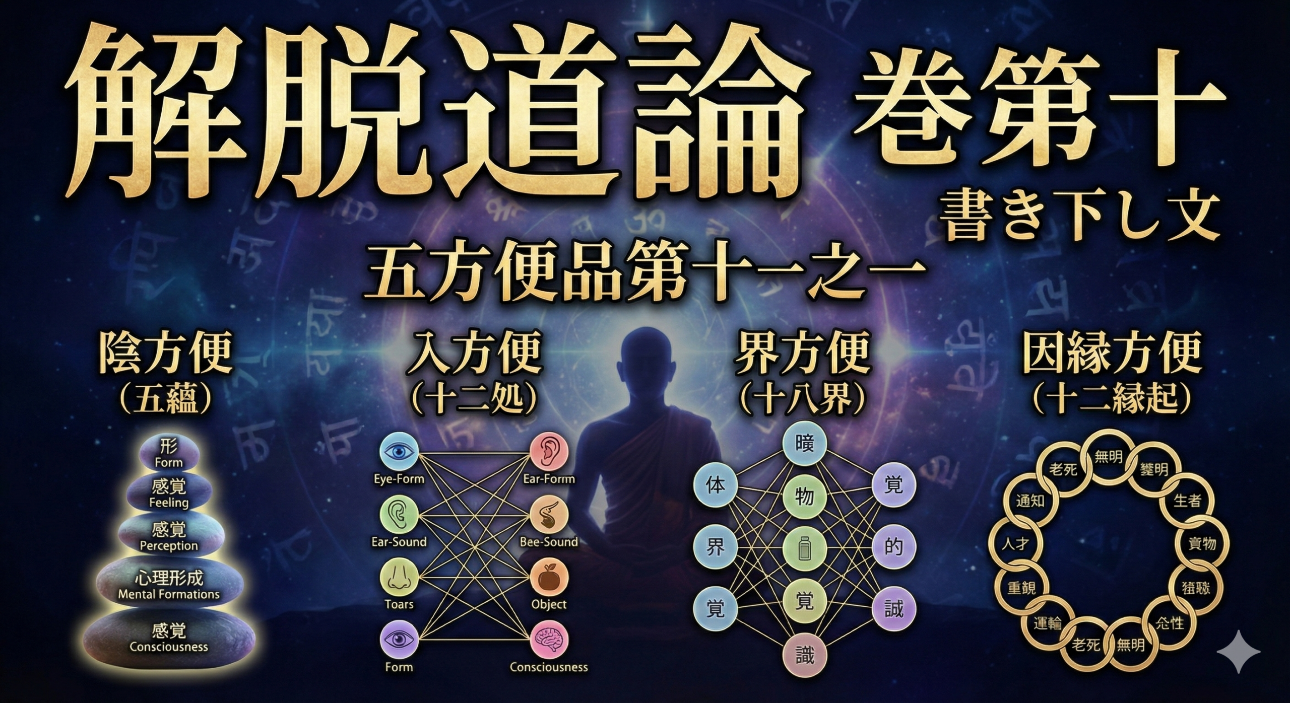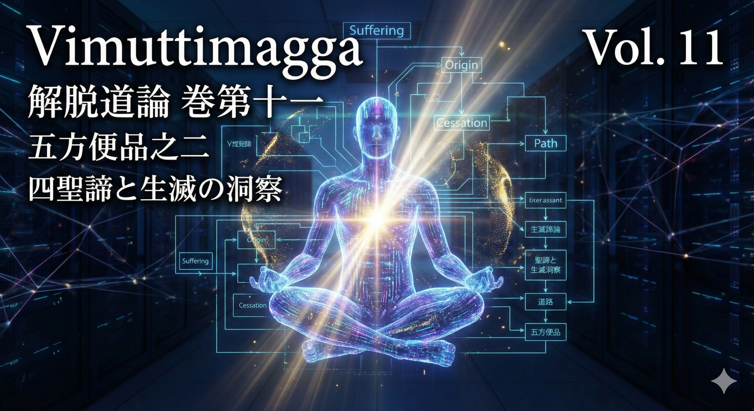 阿羅漢優波底沙造『解脱道論』最終巻第十二「分別諦品之二」の全文書き下し。修行の最終段階、四聖諦の現観から須陀洹・斯陀含・阿那含・阿羅漢果に至る聖者のプロセス、そして究極の悟り「滅尽定(想受滅正受)」の境地を詳述。心身のシステムが完全に停止するニルヴァーナの核心に迫る重要原典ソース。