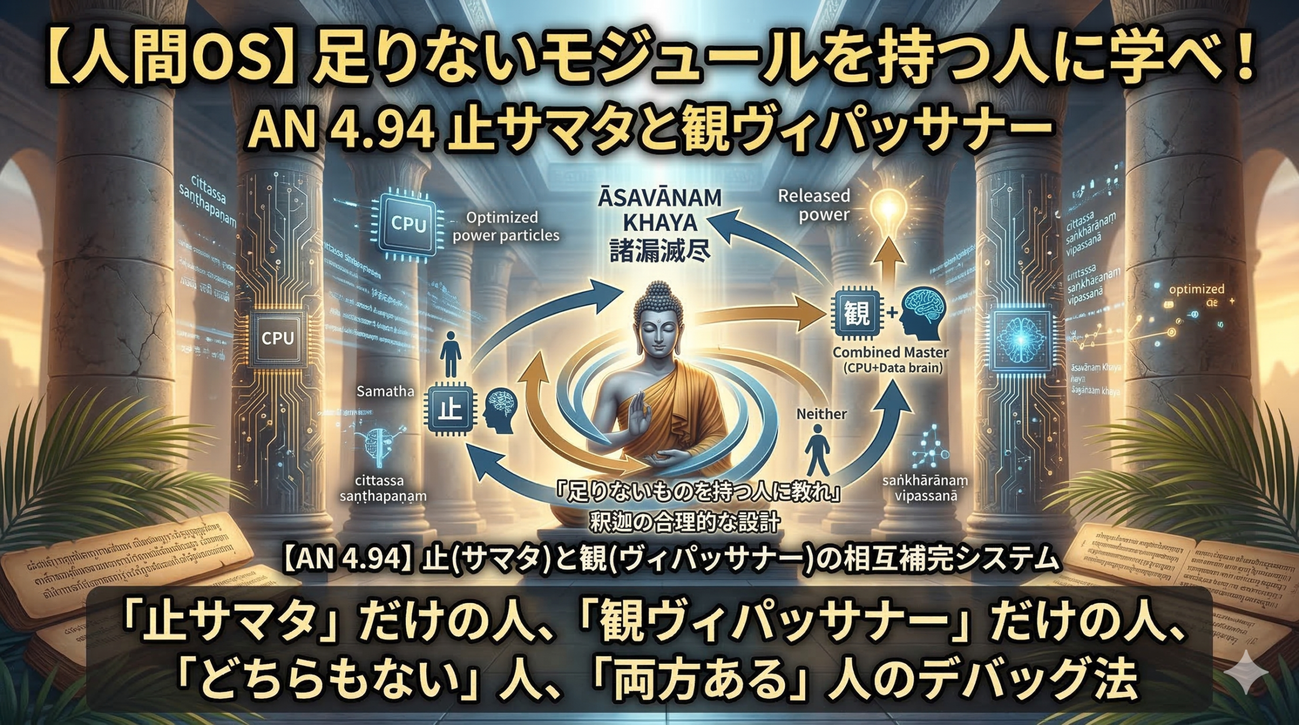 比丘たちよ、心の静止をも法の観察をも、すでに得ている人は——その善なる諸法をしっかりと基盤として、さらに先へ、**諸漏の滅尽(āsavānaṃ khaya)**に向けて修行を続けるべきである。