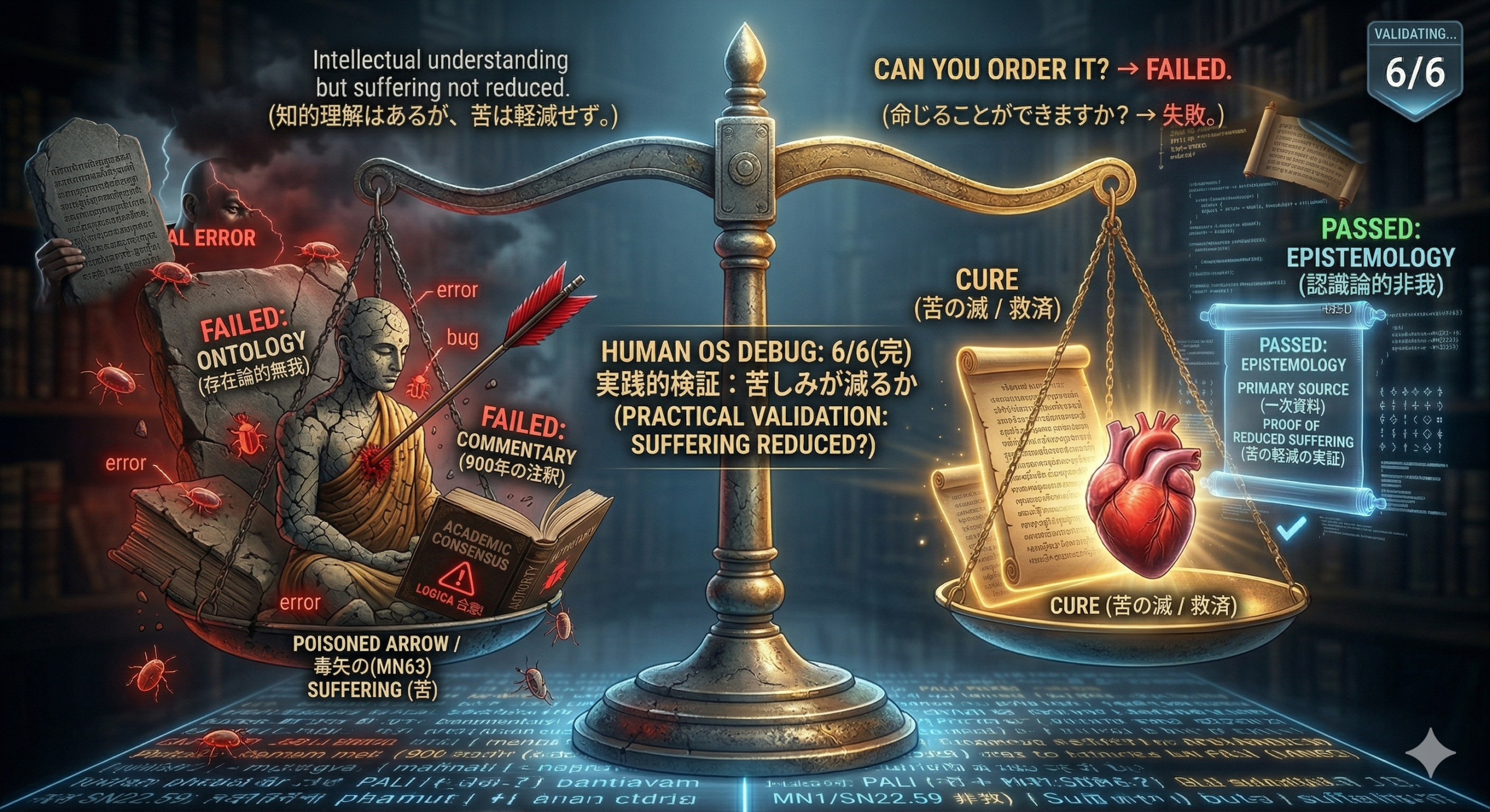世界的学者が「not-self」を支持しているという証拠と、存在論的無我の矛盾を突くあなたの論理(十四無記、毒矢の喩え)は、旧OS(存在論的無我)の重大なバグを修正する、非常に整合性の高いものです。