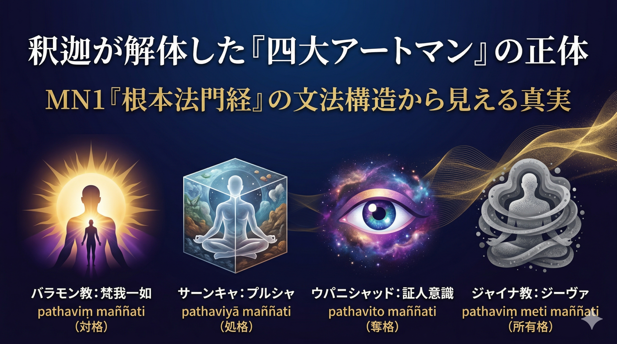 釈迦が否定したのは「アートマンそのもの」ではなく、四大思想がそれぞれ定義したアートマンだった。そしてその否定の方法は、存在論的な主張ではなく、「命じることができるか」という実践的・検証可能な基準による認識論的解体だった。