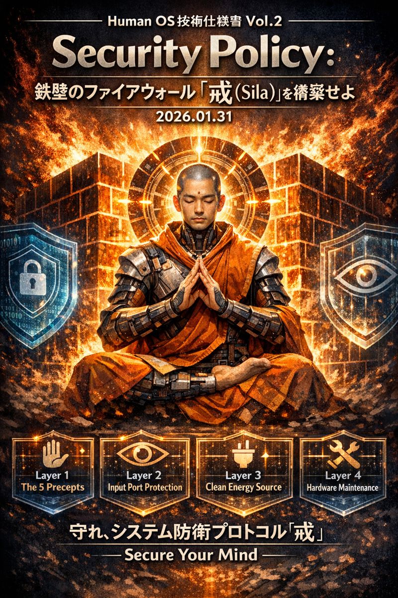 この状態で「呼吸に集中(禅定)」しようとしても、メモリ不足で必ずエラーが出ます。 戒を守るとは、「後悔」という不要なプロセスをKillし、CPU使用率を0%に近づける(アイドル状態を作る)ための技術なのです。
