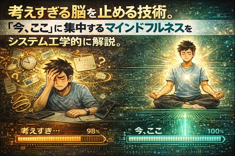 この記事では、放っておくと暴走する脳の自動運転モードを停止させ、意図的に**「手動運転」**に戻すための技術、すなわちシステム工学的な「マインドフルネス」について解説します。