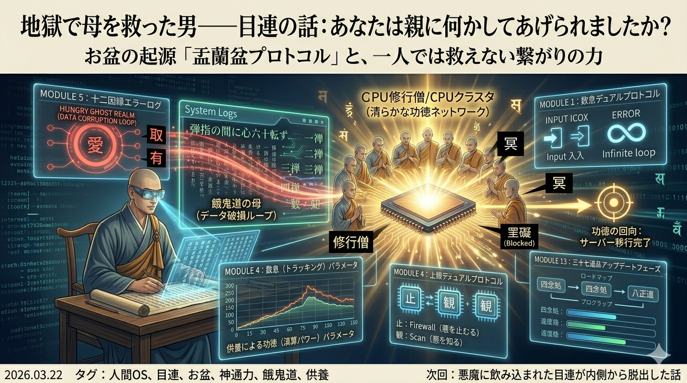 「目連よ お前一人の力では救えない 雨季の修行を終えた 清らかな修行者たちに供養し 彼らの力に頼りなさい」