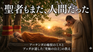 釈迦の側近アーナンダが犯した、たった一度の「沈黙」。師を失う恐怖が、なぜブッダの寿命を縮めたのか?絶望の淵で授けられた「自分を拠り所とせよ(自灯明)」という言葉の真意を解説。現代の依存関係から抜け出し、自立した「自分だけのOS」を起動させるヒント