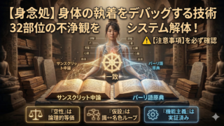 心(Citta)というメインプロセッサのルート権限を取得する「心念処」の実装。さらにシステムの構成要素(五蘊)に50項目のストレステストを行い、執着という依存関係を強制解除(Unlink)する「法念処」のデバッグ手法をシステム工学的に徹底解説。