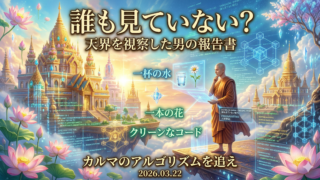 毎日頑張っているのに「どうせ誰も見ていない」「報われない」と感じていませんか?釈迦の弟子・目連が天界を視察して判明した、驚くべき「カルマのシステム」をIT用語でわかりやすく解説。見返りを求めない「純度100%の小さな善行」が持つ本当の価値とは。
