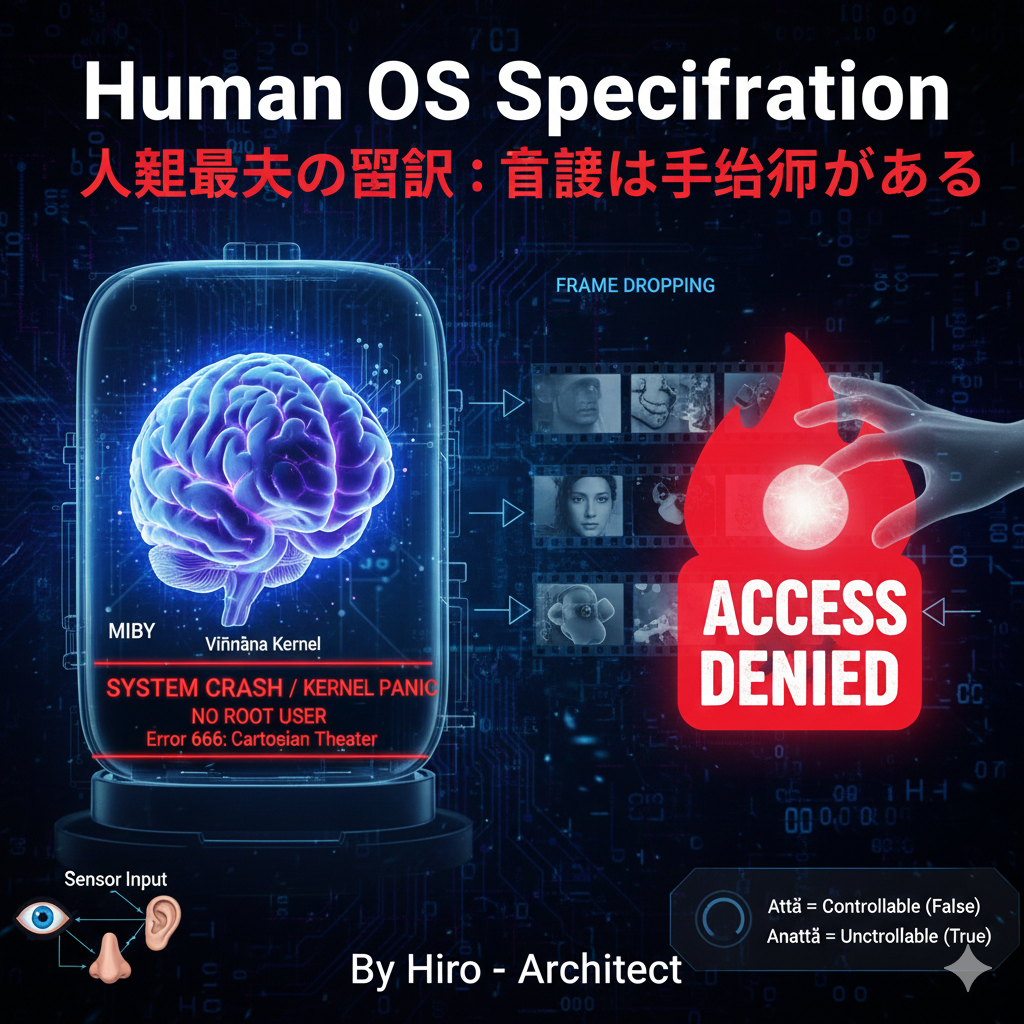 現代人は、脳の中のどこかに「小さな操縦席」があって、そこに「私」が座り、目というスクリーンで映画を見ていると考えている。 これが全ての苦しみの根源だ。 ブッダのHuman OS解析によれば、「操縦席」は空席である。 いや、操縦席すら存在しない。 あるのは「入力(色)」と「処理(受・想・行)」と「出力(識)」の高速な連鎖だけだ。 「見ている私」がいるのではない。「見ること」という現象が、その都度発生しては消えているだけだ。