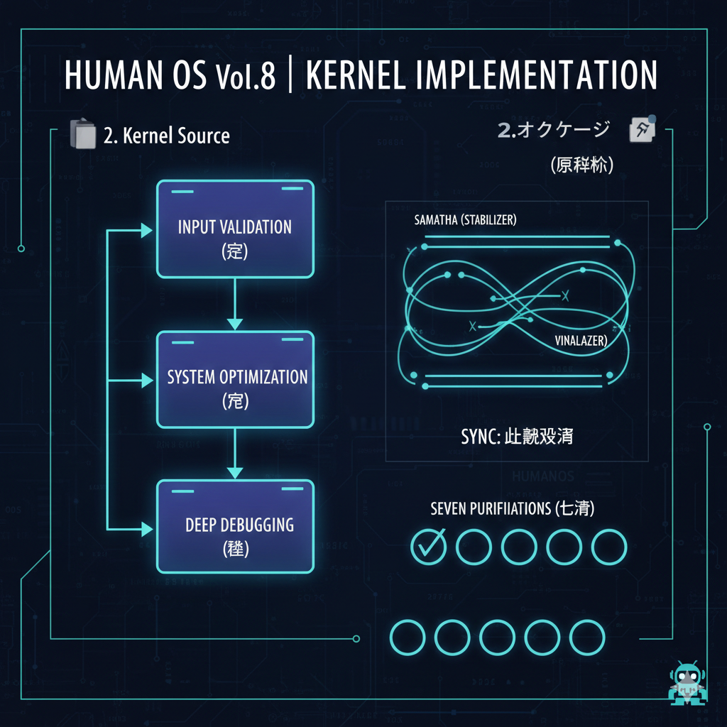 本システムにおけるカーネル実装とは、「戒(Security)→ 定(Stabilize)→ 慧(Debug)」という一連の処理を、一つの統合されたプロセスとして実行することである。